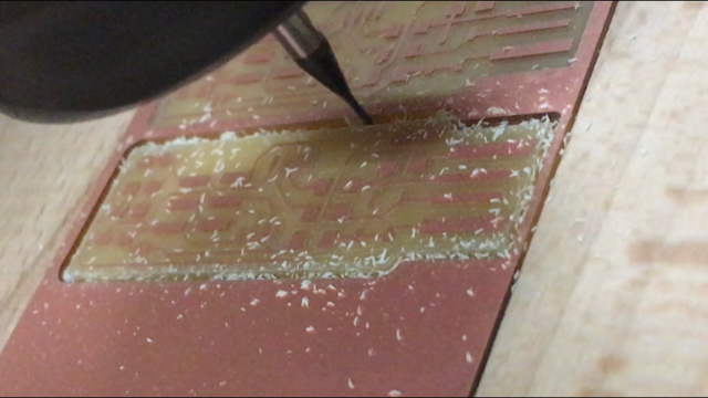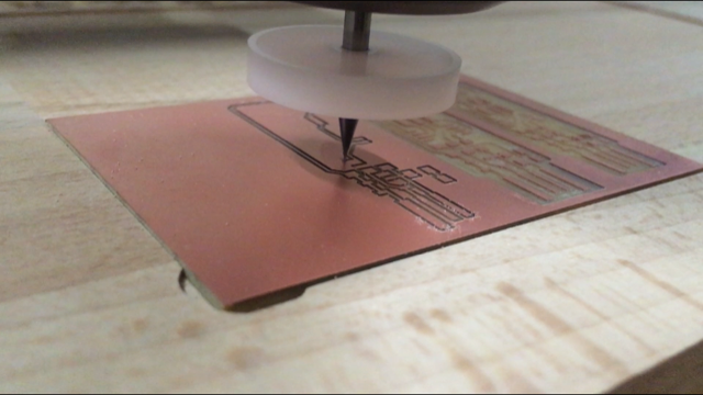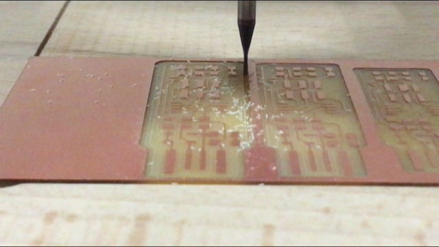 For testing purpose (and for fun), I decided to make my first PCB using the machine I know the best. I had t find out the machine parameters. I began by surfacing a piece of wood that became the support for PCB milling