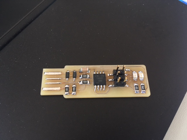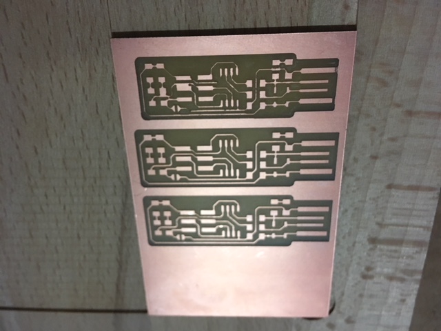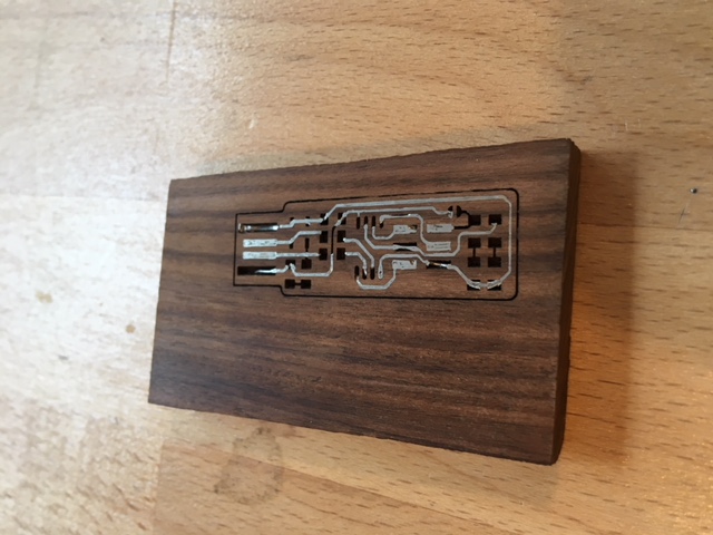 I tried to make a PCB using my personal skills in wood working. The idea is to mill a precious part of wood and dill the spaces with stain.
