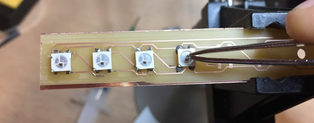 I want the propeller to be between 6 and 8 inches. That means the store bought LED strips would only have 5 lights. I have designed my own board that squeezes twelve 5050 Neopixels on the propeller.