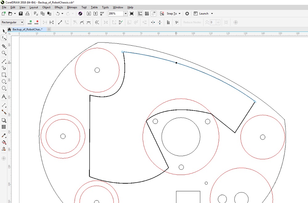 I started by measuring the size and distance between all the components. The components were drawn in CorelDRAW in RED. This I drew a perimeter in black that will be cut from acrylic. I used color mapping to cut the black lines and engrave the red lines to check alignment.