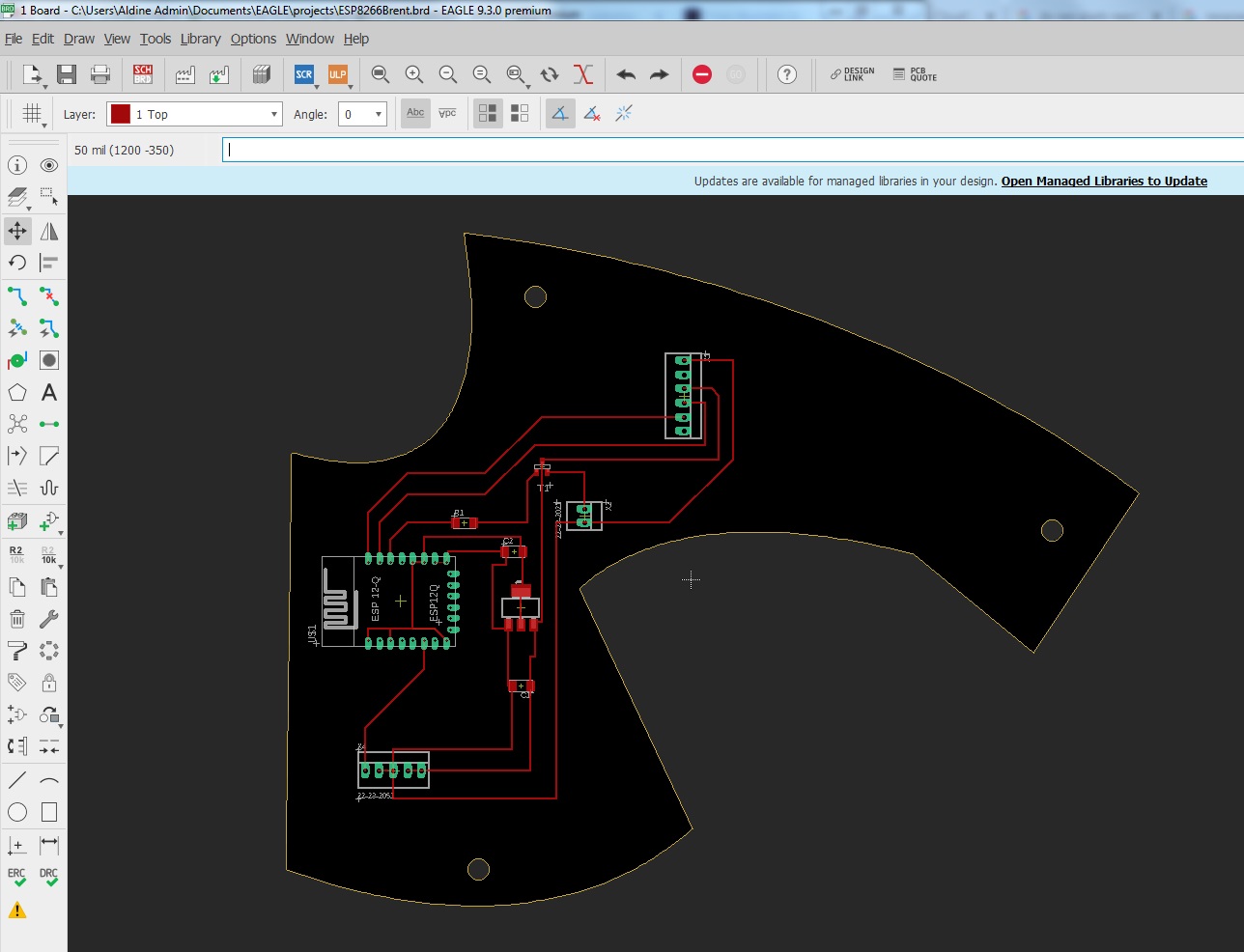 Once the outline was imported I moved all the components onto the board and routed the traces, like in Week 7