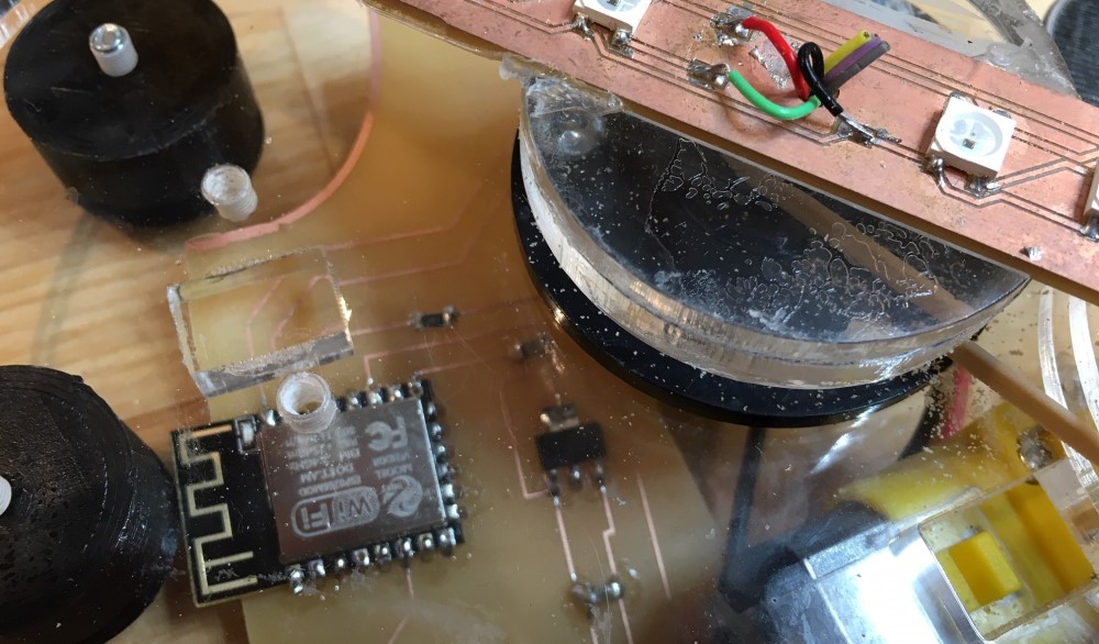Possibly my favorite part of this project is the custom ESP8266 circuit board and chassis for the robot. I was able to use the ESP8266 board designed in week 14 to run the robot.