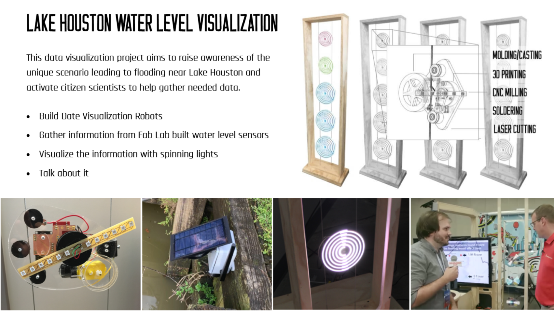 My Fab Academy project aims to raise awareness of an issue faced by residence living near Lake Houston. I will build a robotic art project that visualize data from a water level sensor.