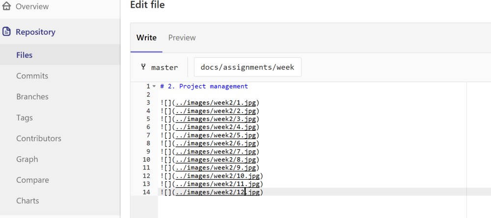To add images to a post I created a new sub-directory to hold the images for each week in the image folder. doc/images/week2