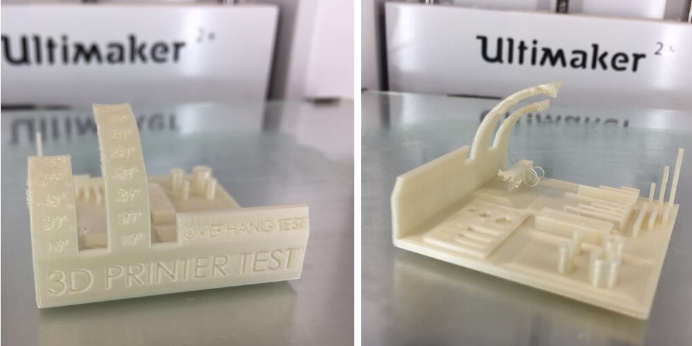 - The Ultimaker does a really great job with overhangs as long as they are gradual, like the arch. Behind the arch is a 90 degree overhang that didn’t print. With drastic overhangs like these I will use supports.