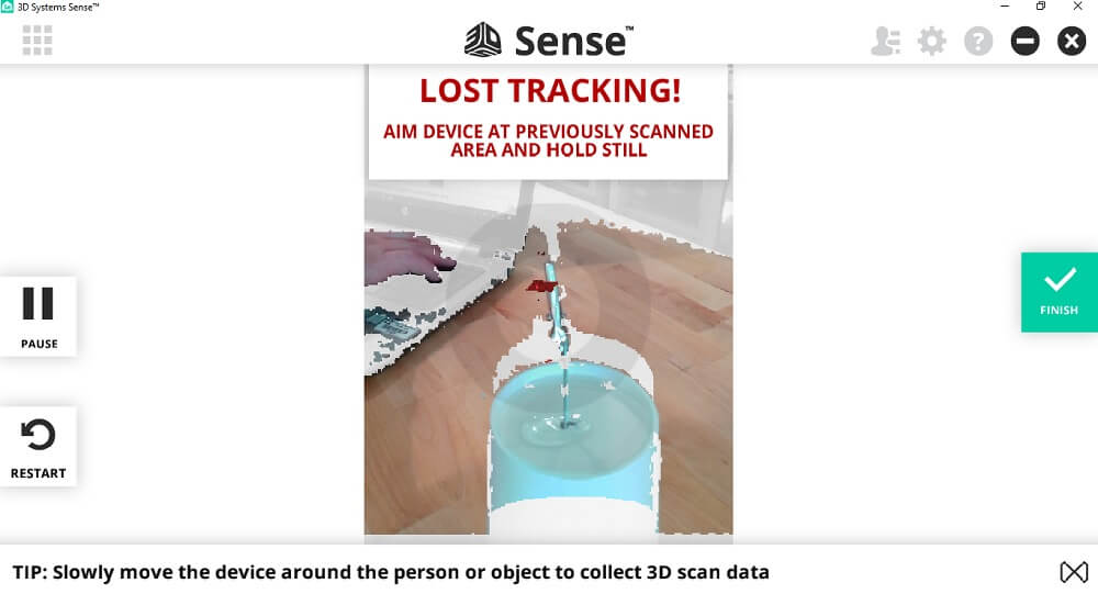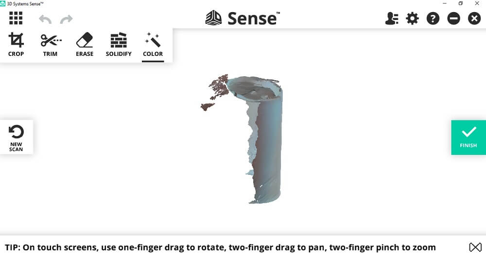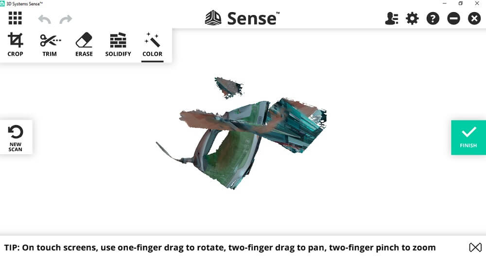 - The Sense 2 scanner needs to move around the object with the object stationary.