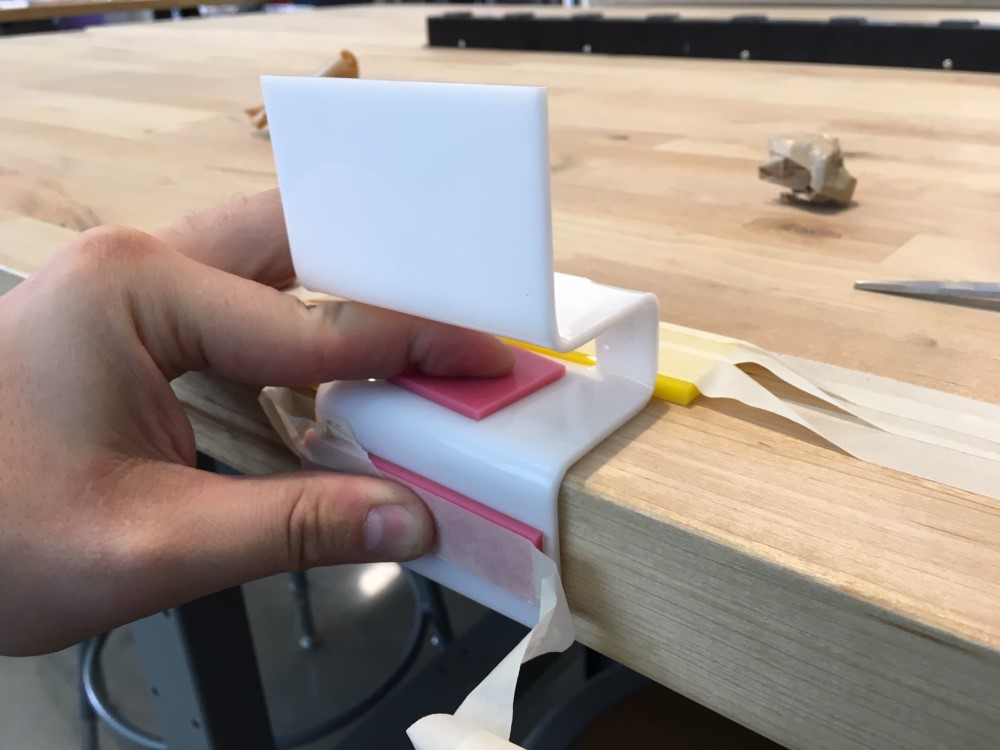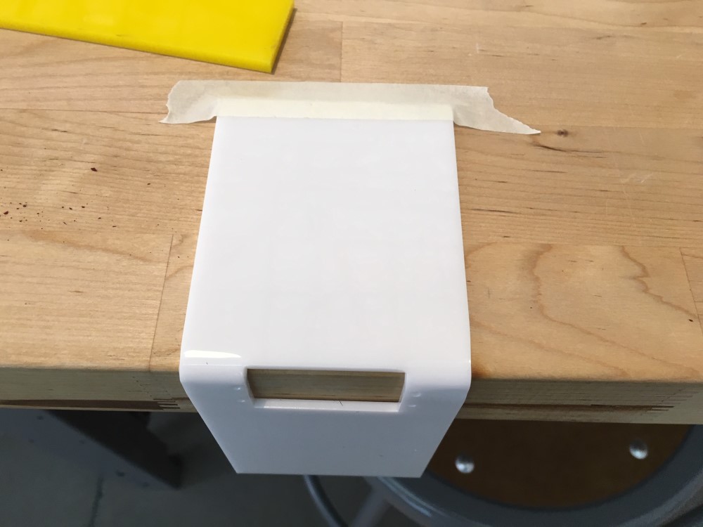I had to really think through the order of bends to make it all possible. Plus, the plastic was hot enough I needed to use pink scrap arylic to prevent my hands from burning.