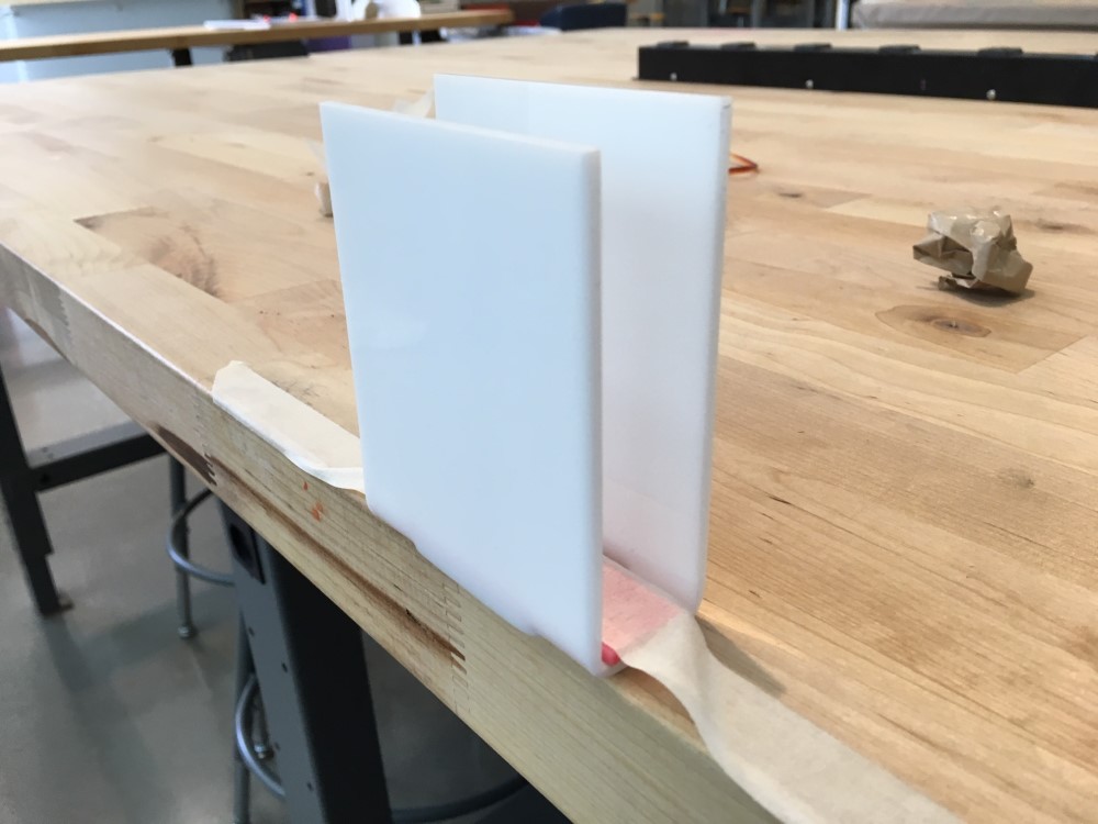 I used a heat gun to heat the 1/8” acrylic and bend it to match my drawings. The edge of the wooden table worked really well.
