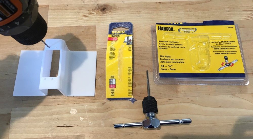 I a 4-40 tap set to thread the plastic to accept screws to hold the motor in the plastic hole. The motor fit like a glove. In the CAD file for the laser I made sure the holes where smaller than the drillbit that came with the 4-40 tap.