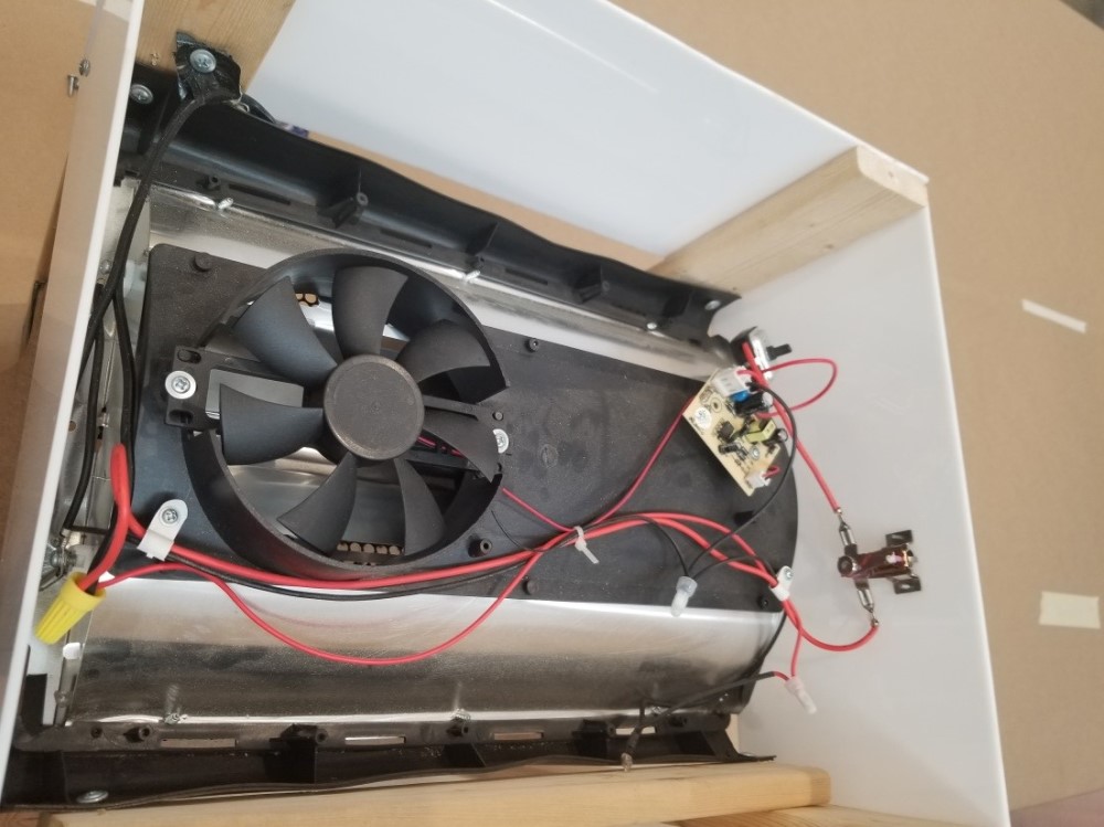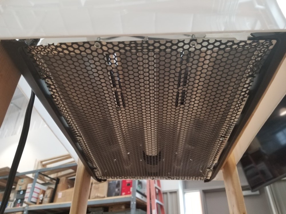 The heater is located on the top of this unit and encased in laser cut acrylic. I used an inferred heater from amazon and just removed the case prior to attaching it to the frame and covering it with acrylic.