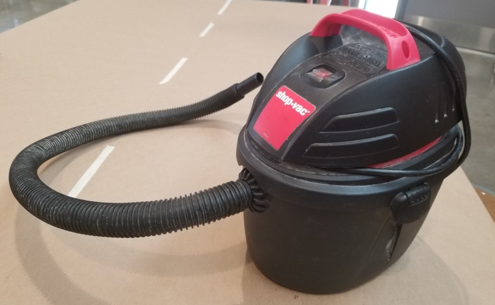 On the side of the box is a 2” hole that fits snug around a small shop vac. When they shop vac is turned on and inserted into the hole, the vacuum table sucks air through the holes.