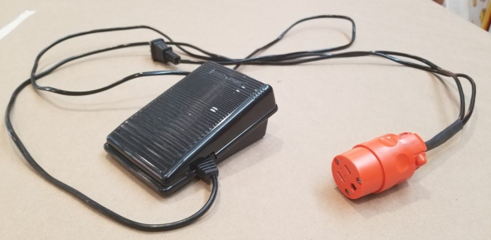 I found it very difficult to hold the material tray and turn the vacuum on and off at the correct time. Ideally the plastic is pulled down over the blank before the vacuum is turned on. To make the timing easier, I recycled a sewing machine foot pedal to turn on and off the vacuum.