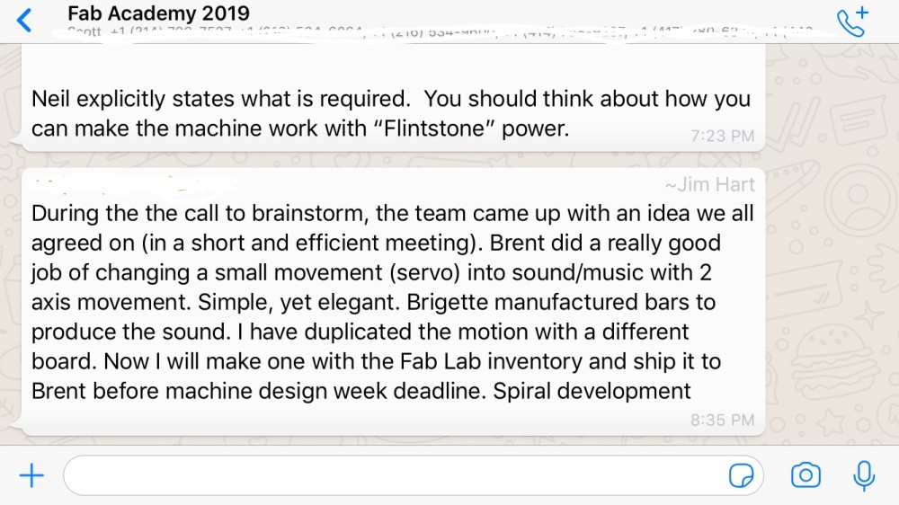 It didn’t take long to realize that since all the members of the LCCC Fab Academy group live in different cities across the country it was going to be hard to coordinate a project. We started discussing the project with via emai and quickly found that it took too long to get anything done via email. We decided to start communicating with WhatApp. This helped for quicker response but we still needed to all be in the “same room” to assign tasks and get the ball rolling. We were able to talk via Zoom and finalize the scope of the project and who was going to do what.