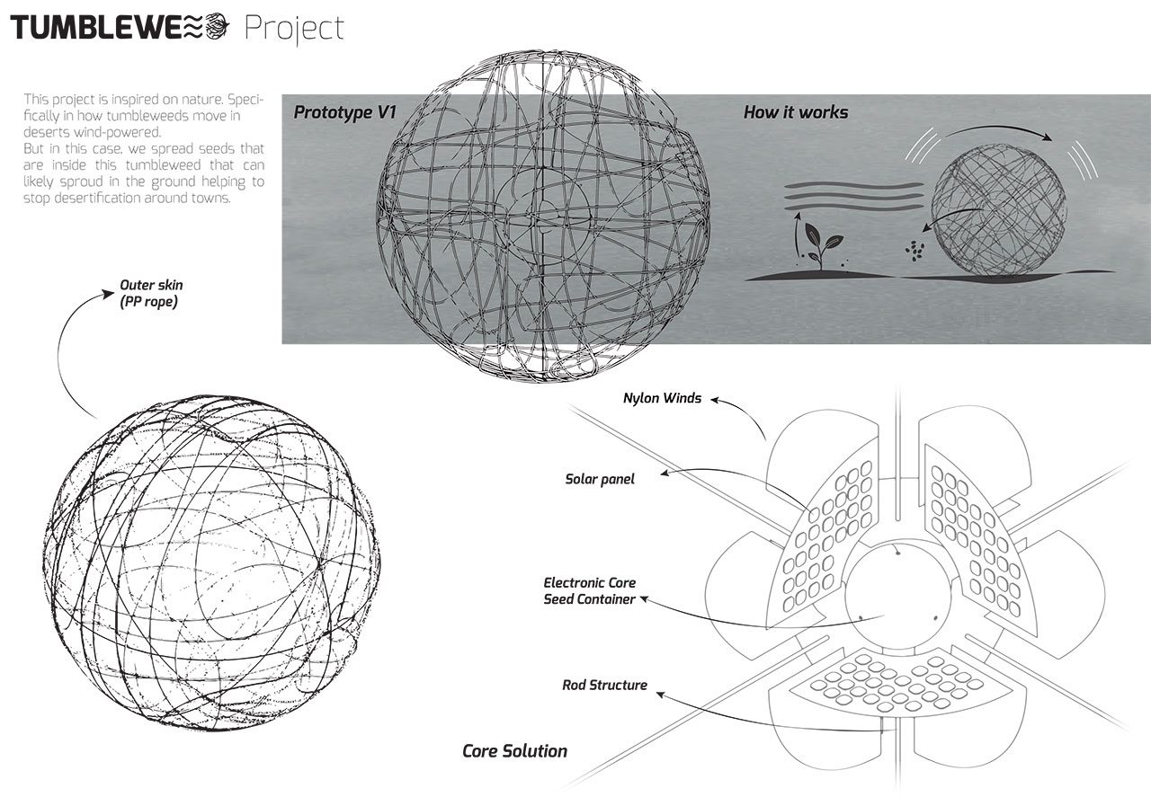 This volume will move by deserts just when there is wind, and it will spread seeds to achieve stopping desertification.