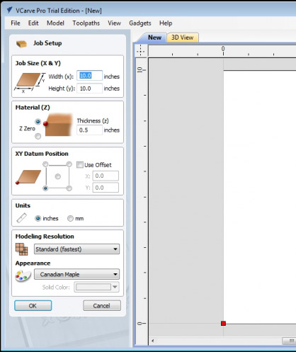 Star opening the program and the first thing you will to configure are the measures of your wooden board: In our case 2x 600 x 1200 x 19 mm MDF / 23,6 x 47,2 x 0,74 in