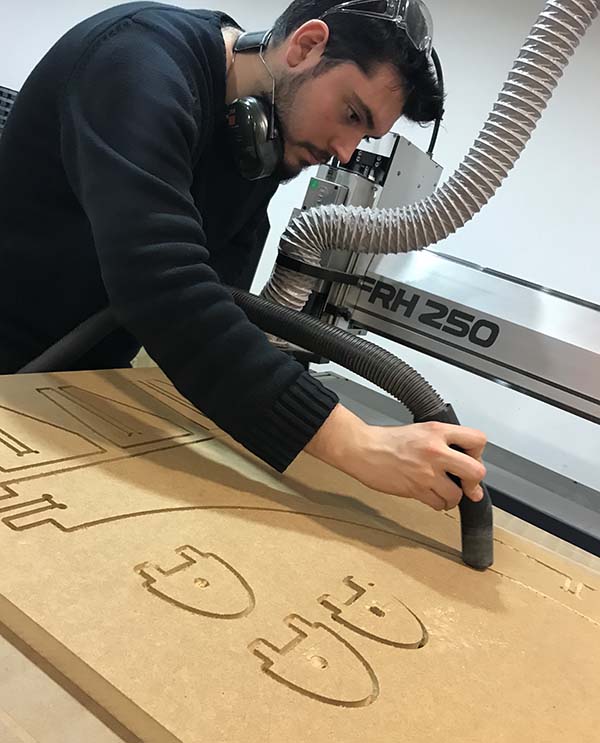 After milling It´s necesary to remove al the dust of the wooden board to keep the FabLab clean, check all pieces are OK and it will be easy to find taps and cut them.