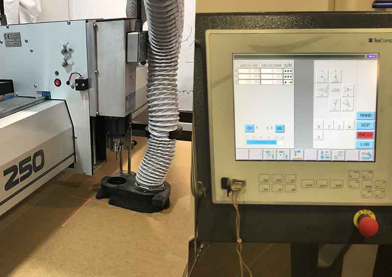 This program has a 3D simulation with the parameters you choose. Here we can see the vector, the paths, even the tabs of each piece.