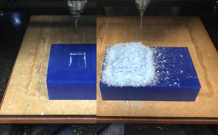 After milling, as I will show you later, this mold was not good because I did 90º box without unmolding angles. In addiction there was a problem with the geometry.