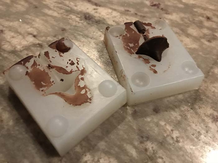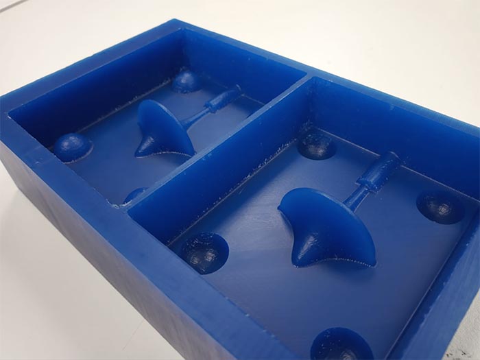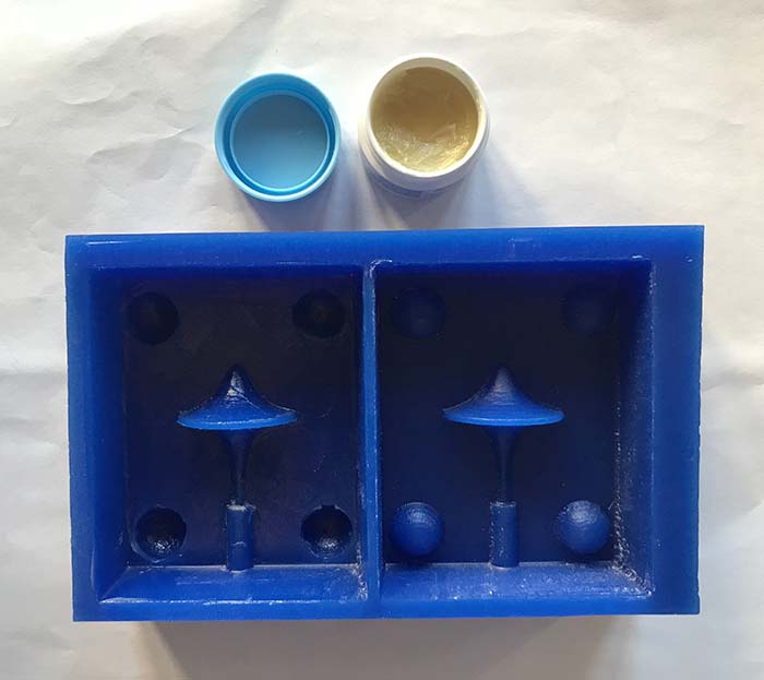 These is the final mold. As you can see it has 2 parts, a negative and a positive side.