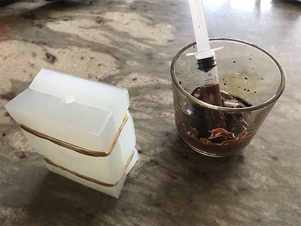 Do not FORGET TO CLEAN it few times generously with water and soap. And just meld chocolate, pour it with a syringe and wait cold it down in the fridge.