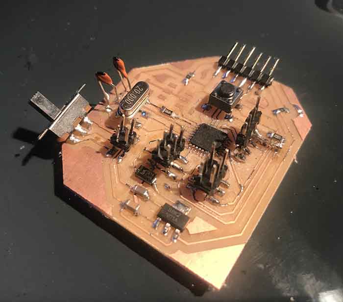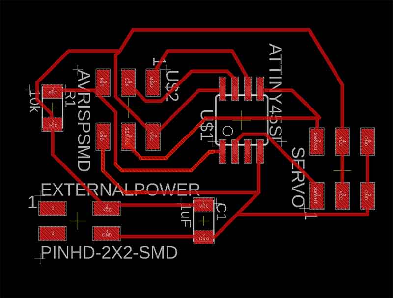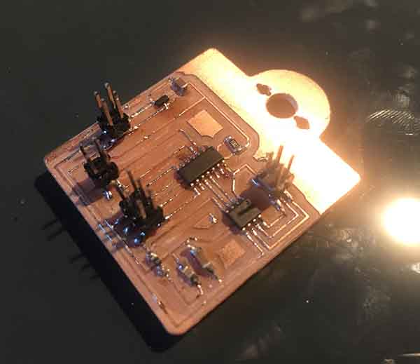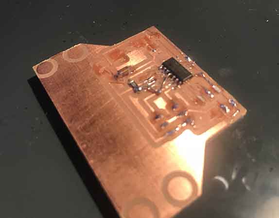 After fabModules and milling the copper board you will have something like this: