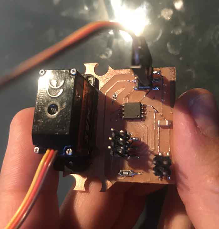 Then I change to Servo motor because I discovered it will be more accurate for my final project and useful. First based on Neil’s design but modified to connect the motor with the BOARD