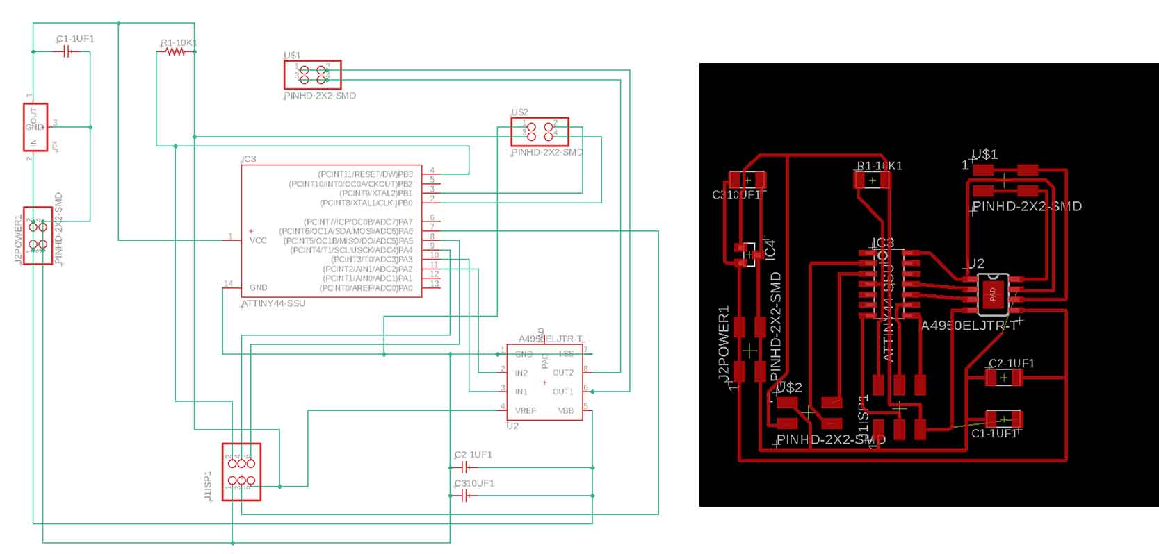 I give up ATtiny44 as I will explain while programming and based onEidha Al Rashdi I generate a new board, in this case adding 4 pines for one accelerometer sensor thinking in the final project.