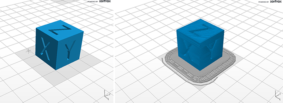 We did a “XYZ 20mm Calibration Cube” test using the downloaded file and prepare the Z-Code with this parameters: