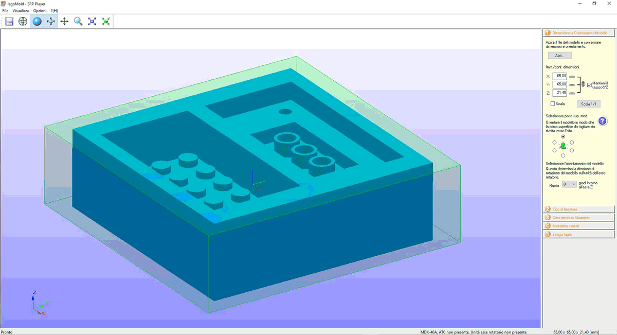 Using Rhinoceros v.5 I’ve obtained its real 3D model but thinking about the endmill’s limits I’ve modified some insignificant internal dimension.