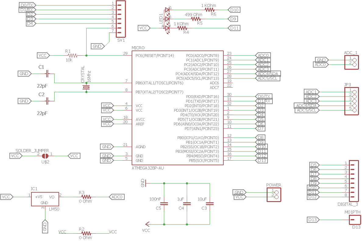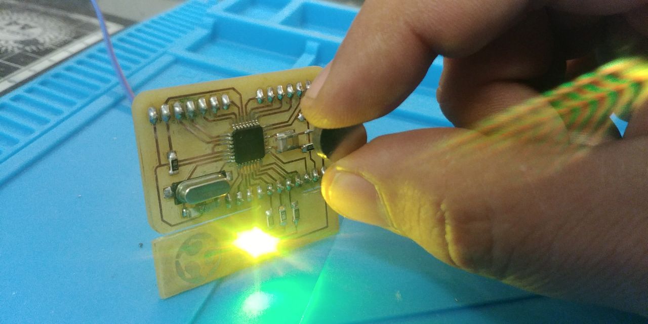 This week I’ve remade my version of SatshaKit-micro; starting from it I’ve added more GND on the board redesign the board’s pinout and add LED RGB 4PLCC SMD for the Output device; using the analog sensor Hall Effect A1324LLHLT-T on the A0 pin of the ATmega328P-AU from previous week I’ve read sensor data and pilot the RGB LED.