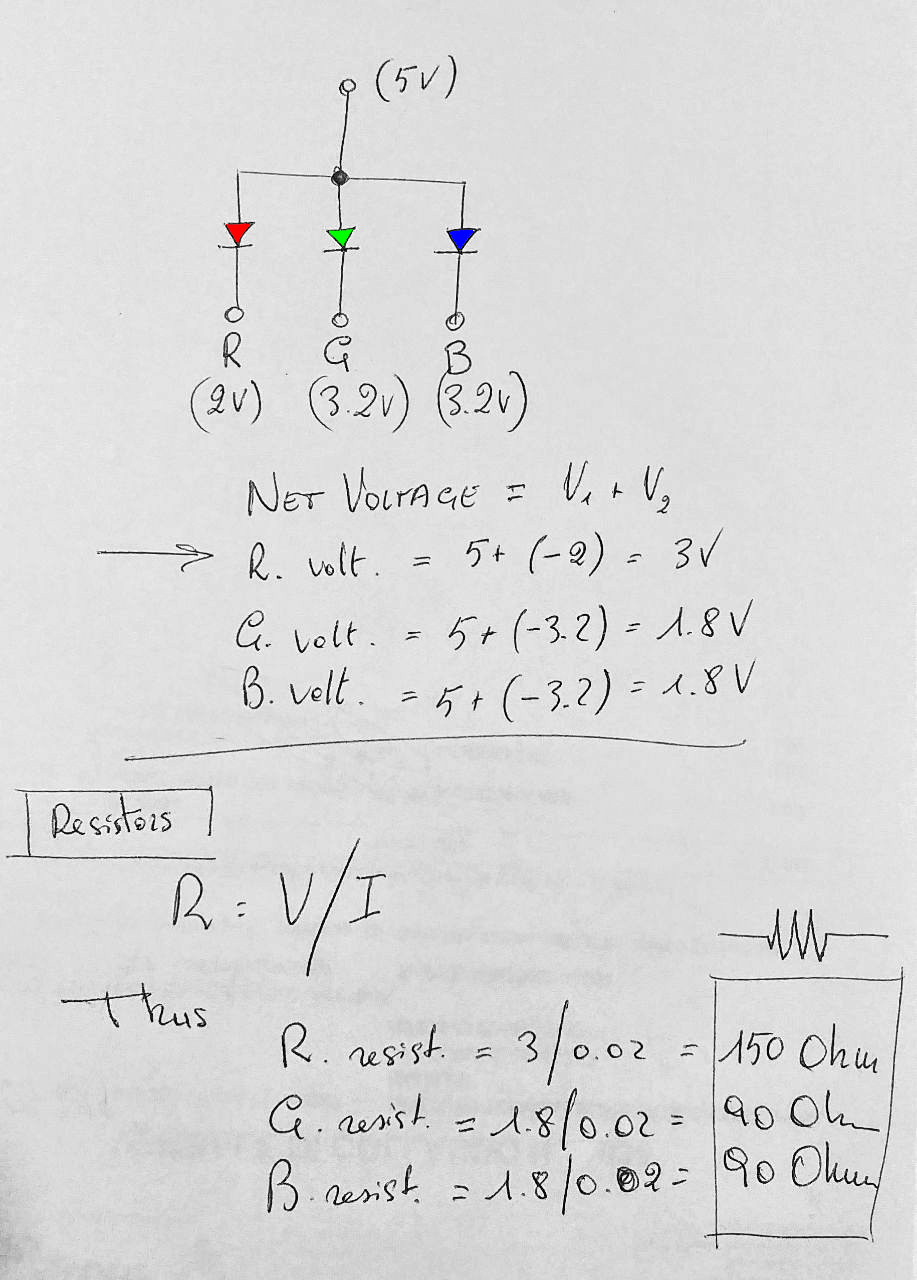 the Current for the red LED is 21mA and the blue one is 26mA. This mean that the rgb led total current is 16+21+18mA = 55mA