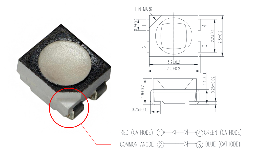 - Voltage - Forward (Vf) (Typ) 2V Red, 3.2V Green, 3.2V Blue