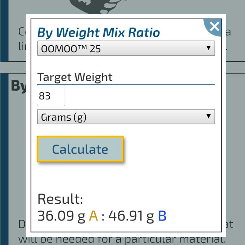 And as this type of silicone is mixed using two compounds, you have to calculate either by weight (A=100
