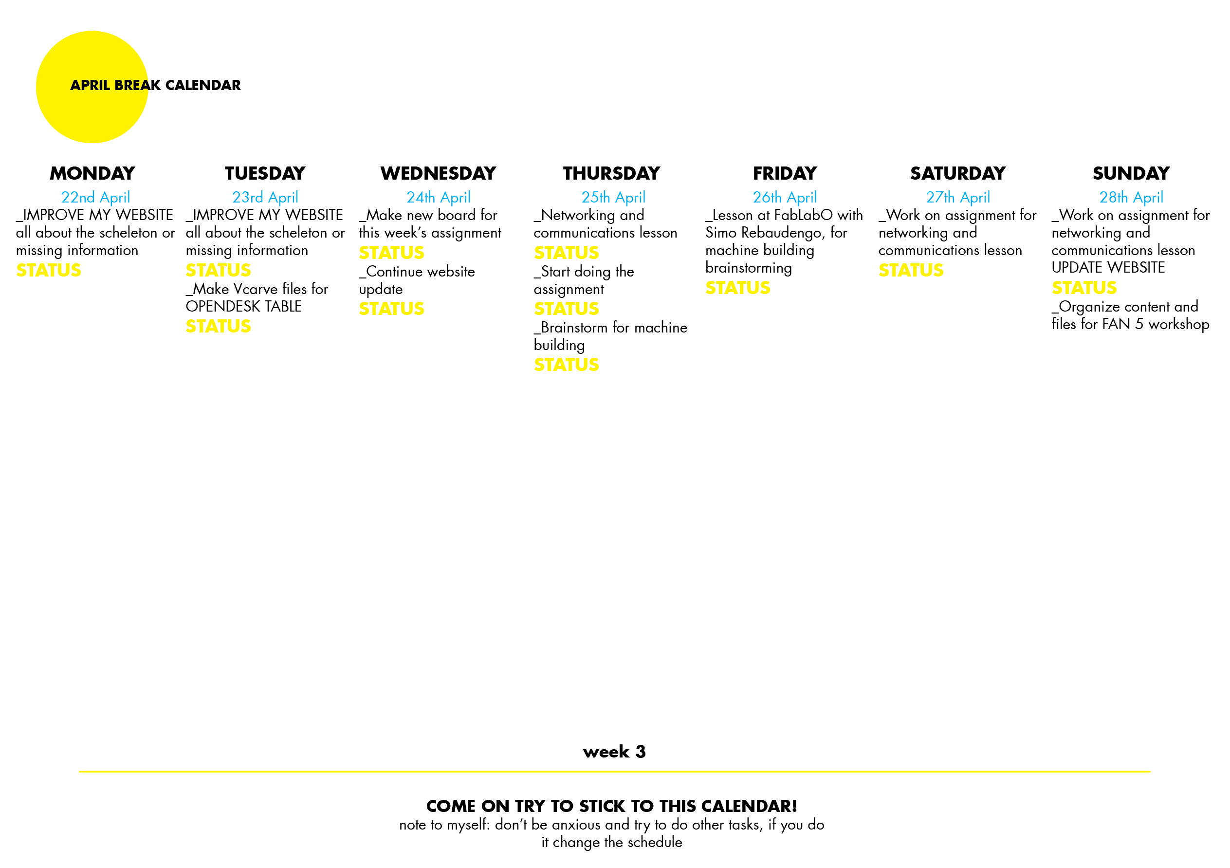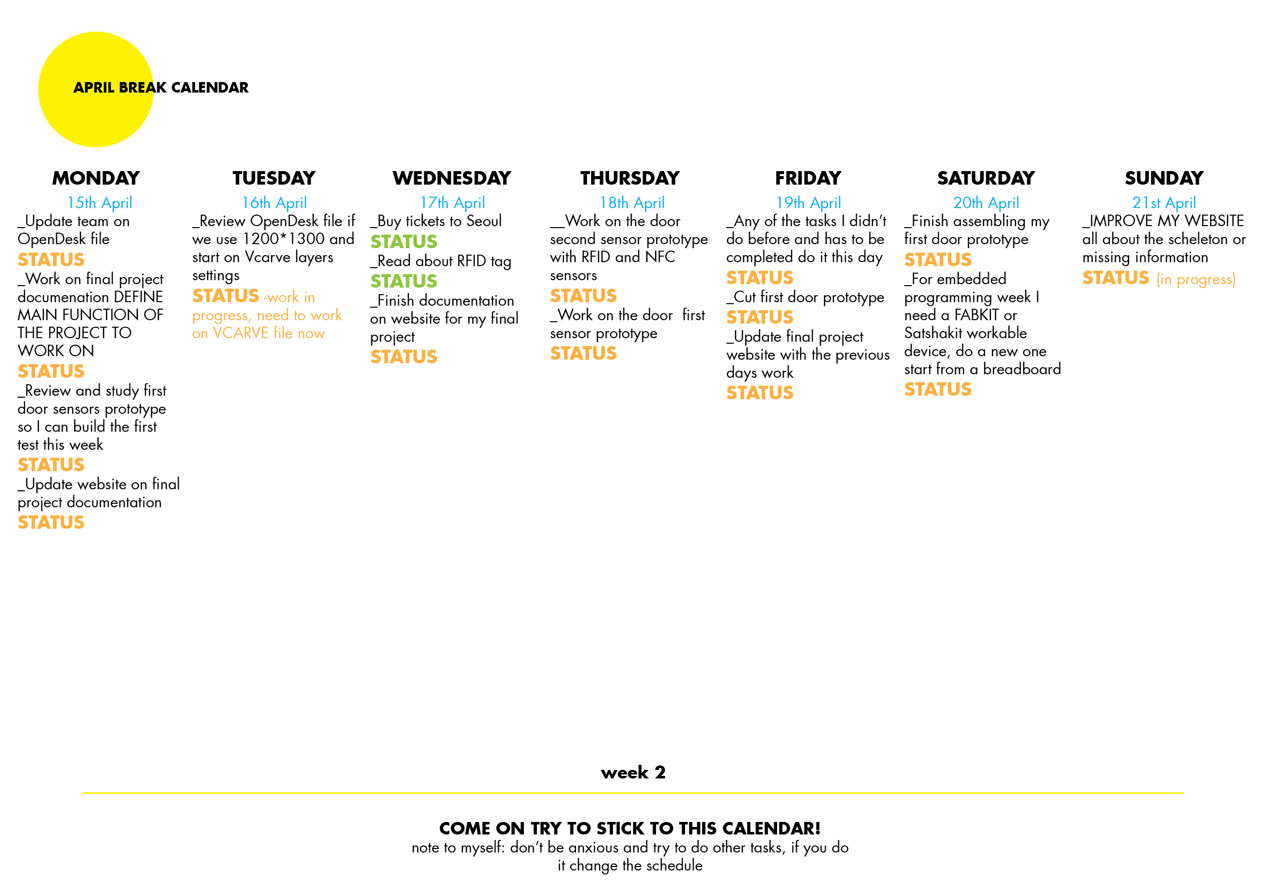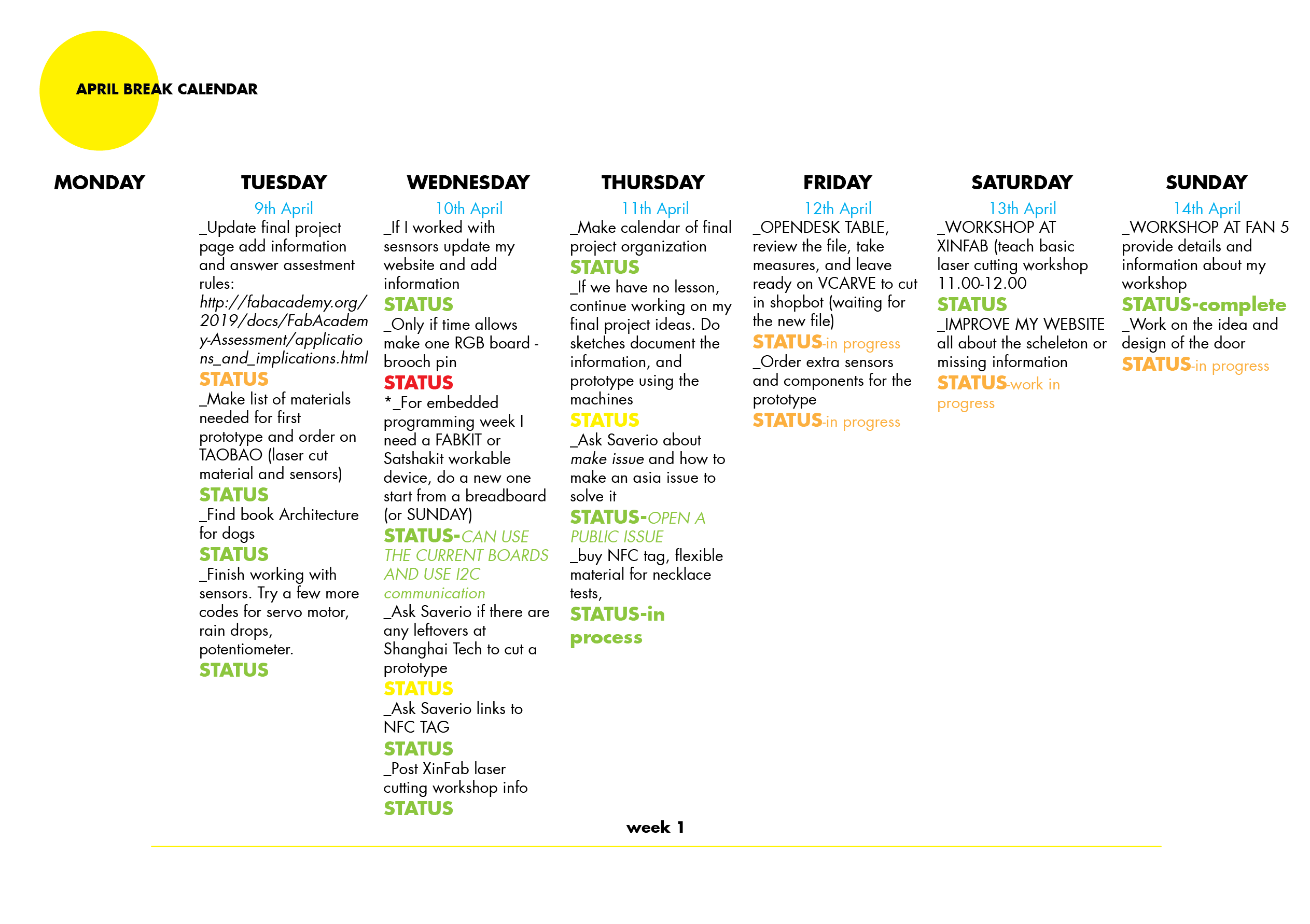 Some things I am still working on them, I was not able to follow the calendar precisely but it is useful