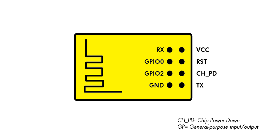 The chip ESP8266 TT-71 has 8 pins, and they are: