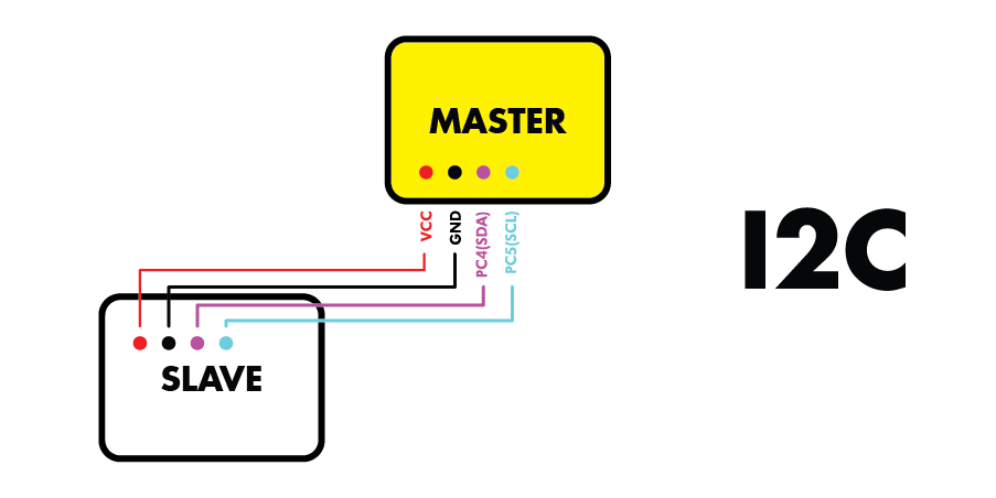 The I2C communication protocol works by setting up a MASTER and a SLAVE(S) connected by two