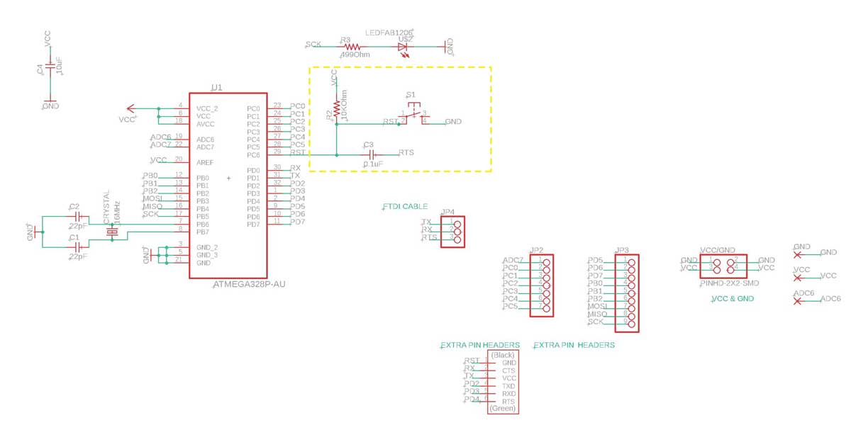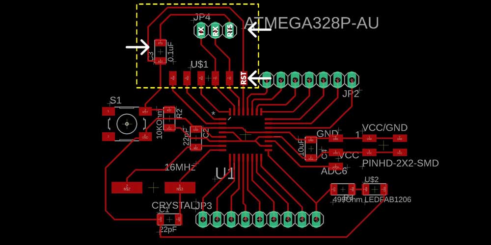 As you can see I modified the connections of RST and the capacitor on the board but not on the