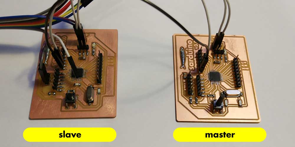As we used 4 boards at the same time, we used a breadbord to share SCL (PC5), SDA (PC4),
