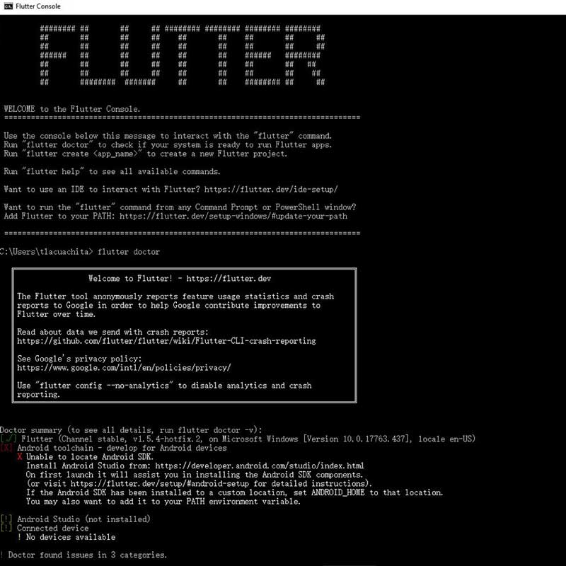 _3 Run flutter doctor inside the directory where you installed flutter, this will give you