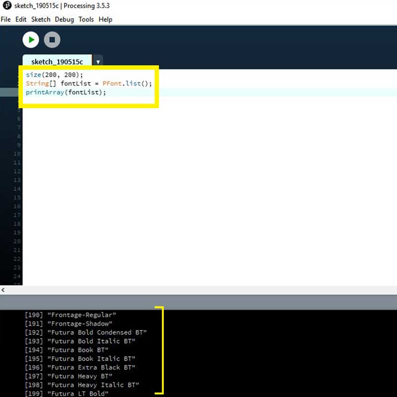 your systme, for that you need to run the following code inside Processing IDE, which will show you