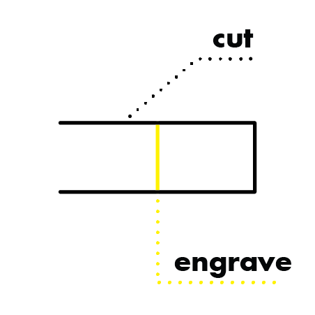 The firsts tests I did I wanted to bend a simple rectangle shape into 90°. I drew a rectangle of 80*25mm. I first cut the cutting layer as any other normal cutting task for acrylic.