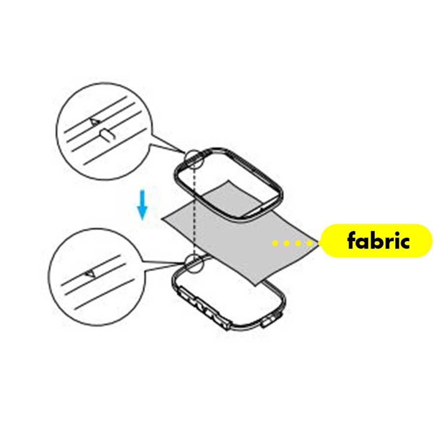 Once you place the thread you have to place the fabric inside the embroidery frame, depends the size of the embroidery you need as they come in different formats.(image source from Brother manual)