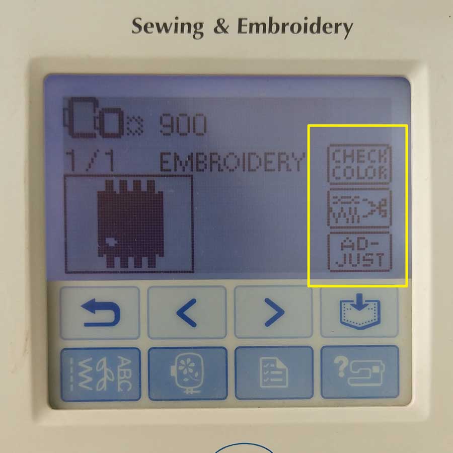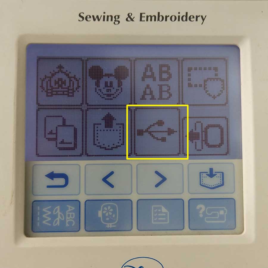 Select your .pes file inside the USB icon. Here you can select as well symbols or letters from the library:
