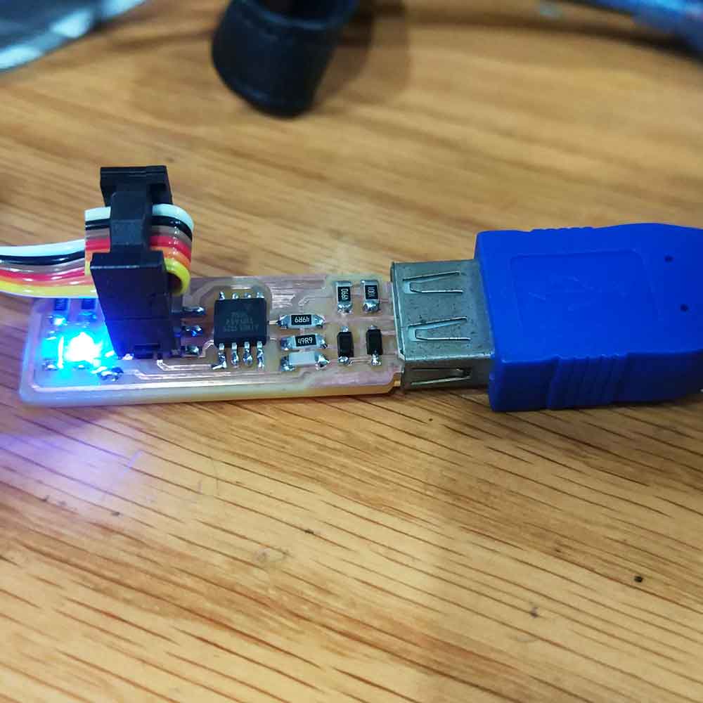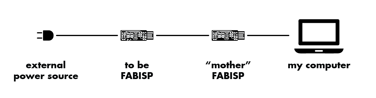 I connected my FABISP to an external source of power and the LEDs lights on my board turned on, that's a good sign!! but it doesn't mean it's done.