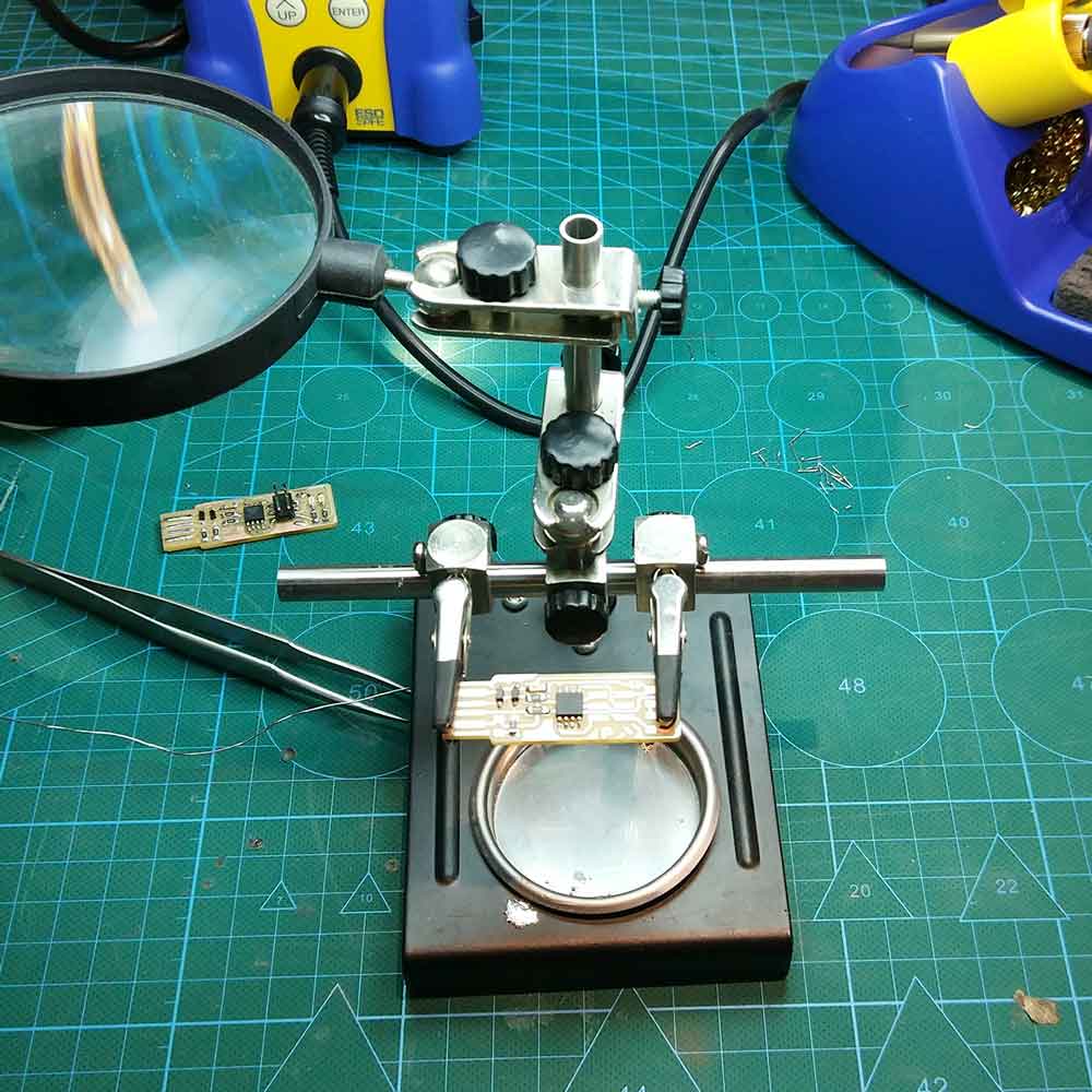 When soldering the LEDs it was tricky to find the correct position to solder them, but using the multimeter you can find the "ground" and locate the LEDs in the correct position.