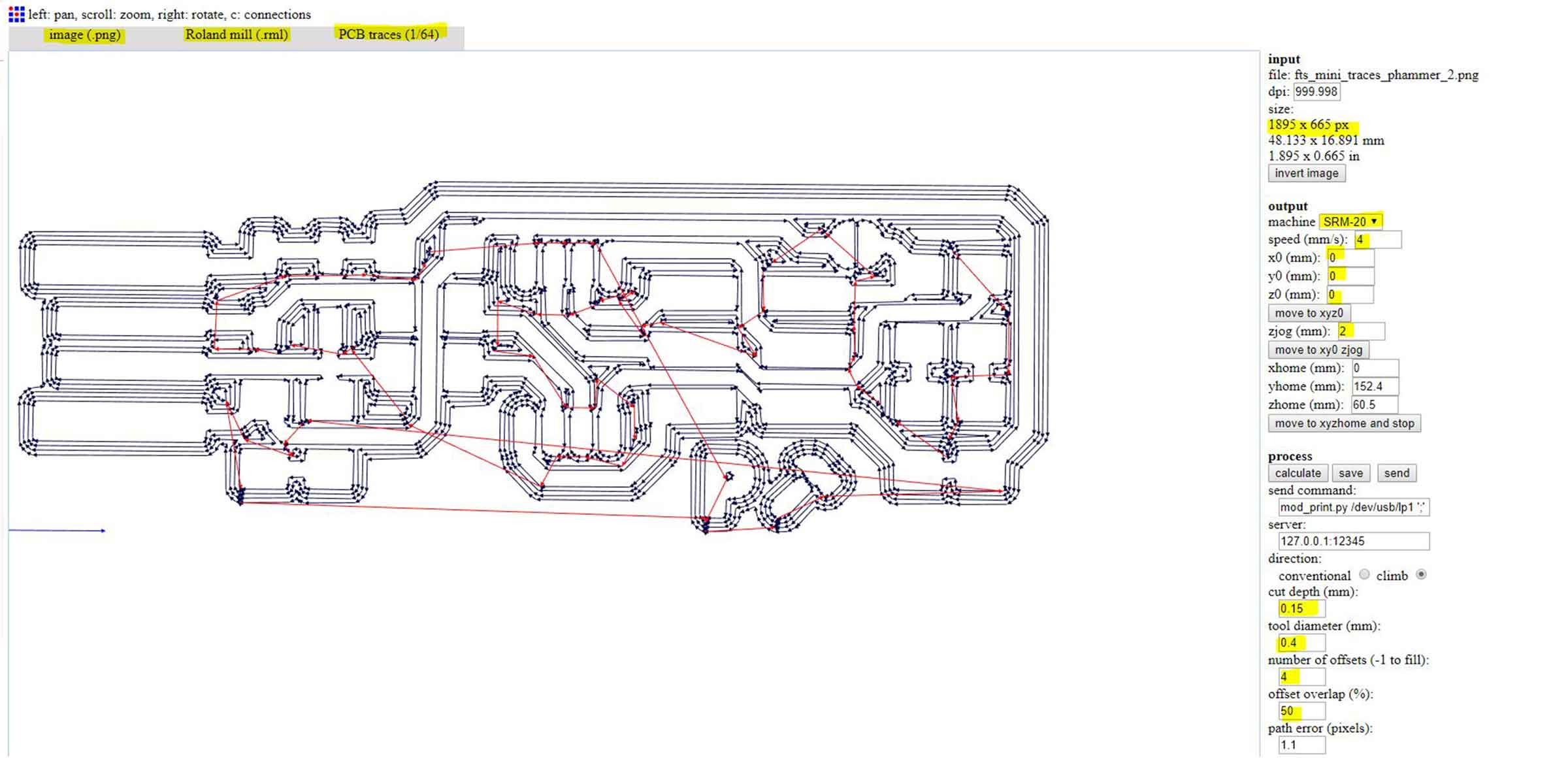 We began with the traces task (recommended to start with traces than the outline), so we fixed the .4mm