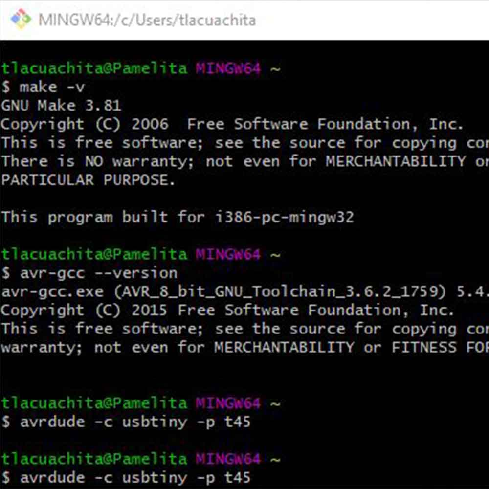make -v avr-gcc --version avrdude -c usbtiny -p t45