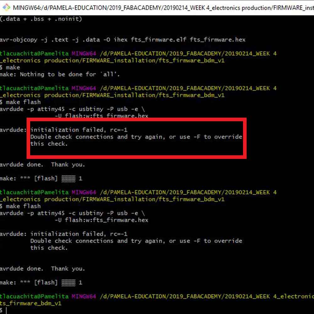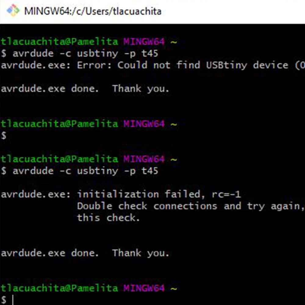 After this connect connect the programmer to your computer, open GITBASH and run: