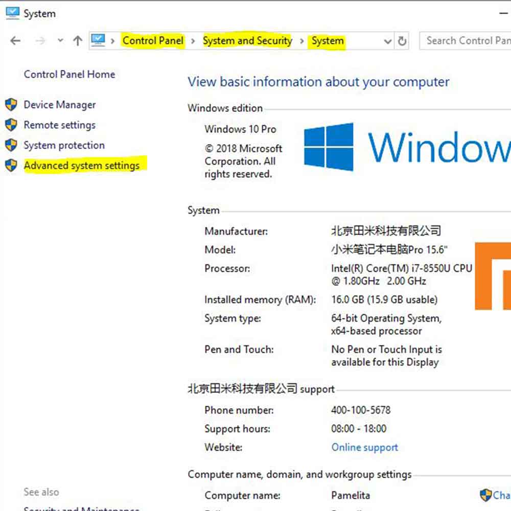 To do so go to: Control Panel>System & Security> System and select "Advanced system settings".