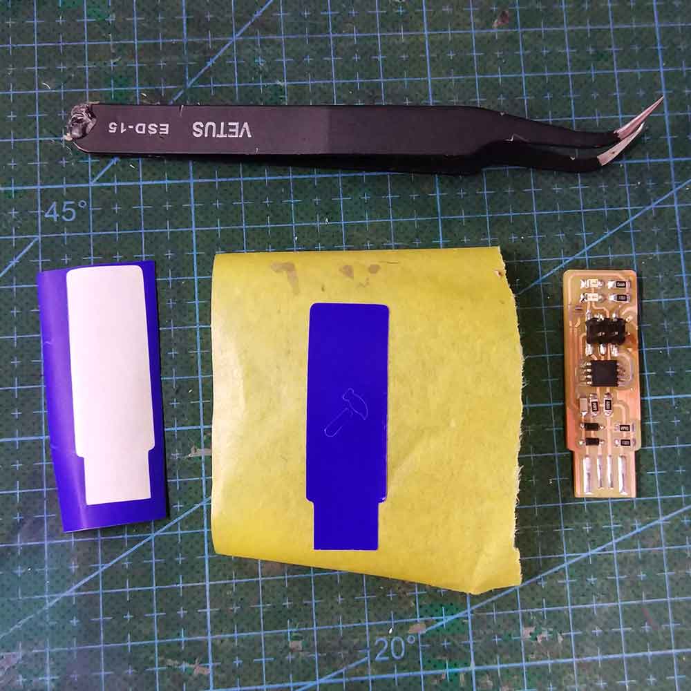 After the PCB is has been cut depending on you settings, there might be some traces of copper leftover on the USB contact, remove them using a knife: